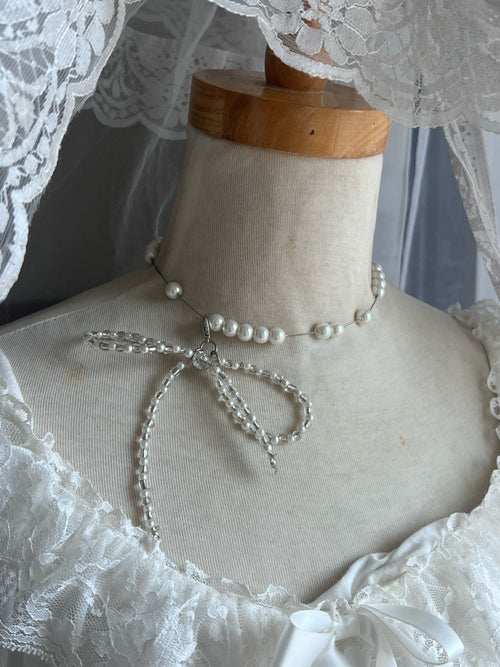 ˚Delicate pearly choker with attachable bow ˚˖𓍢ִ໋🦢˚